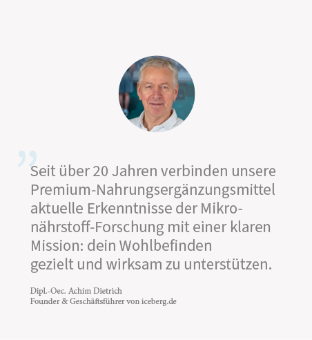 Innovation trifft Erfahrung – für Gesundheit, die weiter denkt. Seit über zwei Jahrzehnten verbinden wir bei iceberg.de wissenschaftliche Präzision mit einem Gespür für das, was Menschen wirklich brauchen.